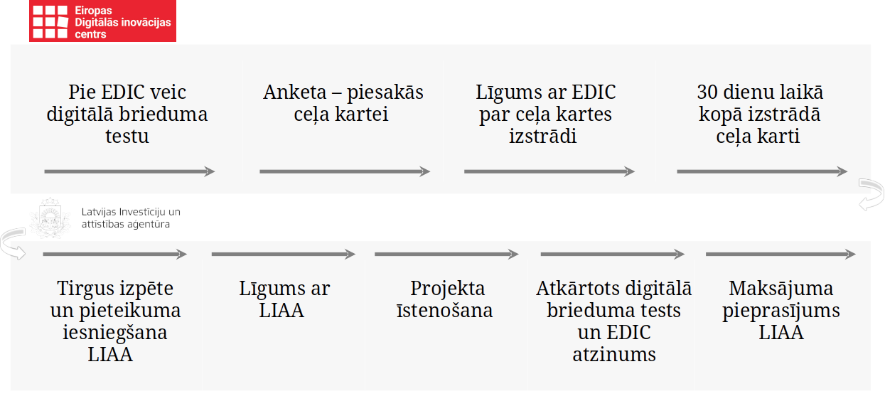 30 dienu laikā pēc projekta īstenošanas – atkārtots digitālā brieduma tests un atzinuma saņemšana (EDIC)